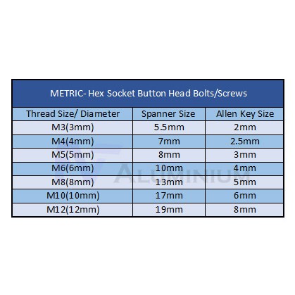 Socket Head Cap Screw Wrench Sizes